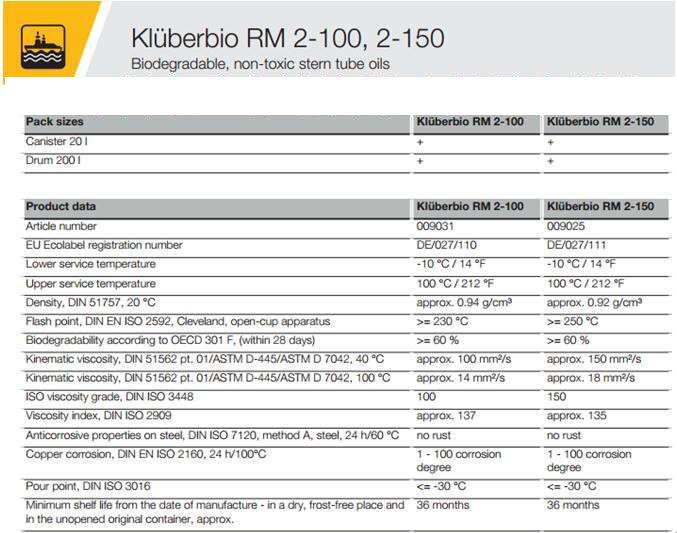 Kluberbio RM油是合成的,生(shēng)物降艉軸管油。