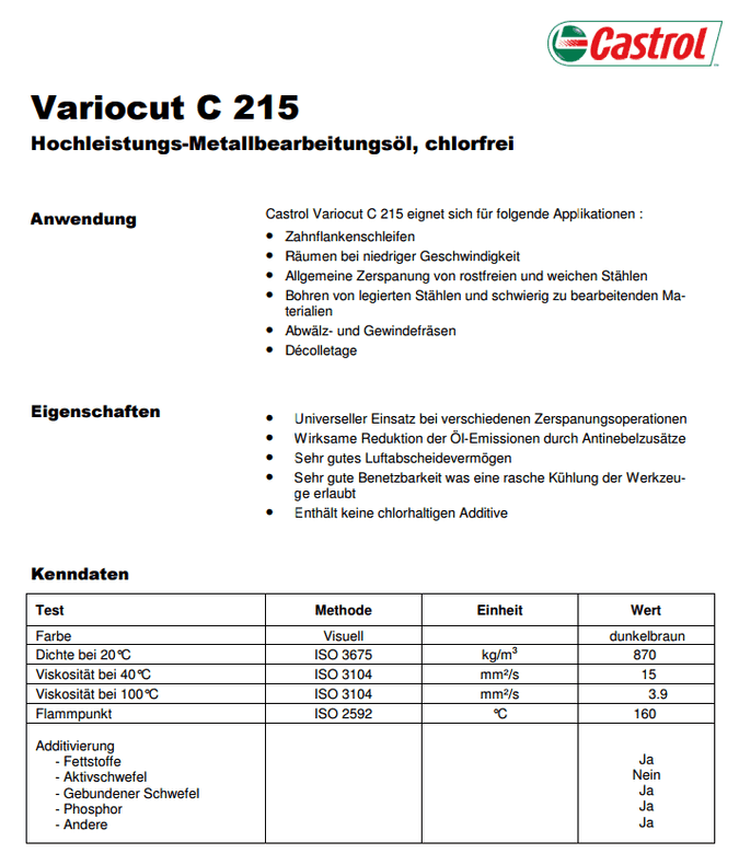 嘉實多Variocut C 215是一(yī)種無氯切削油。