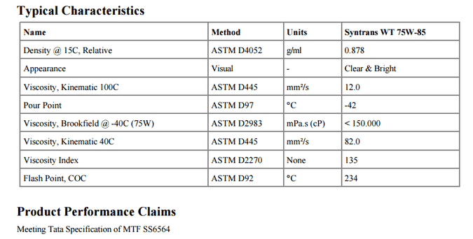 Castrol Syntrans WT 75W-85是一(yī)部分(fēn)合成手動變速箱油特别推薦塔塔手動變速箱