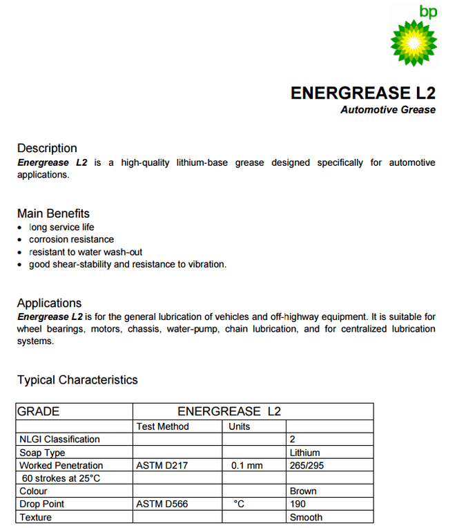 energrease L2是優質锂基潤滑脂專為(wèi)汽車